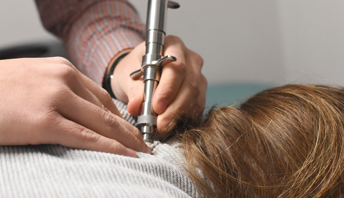This hand held instrument is used to adjust your body. This means there is no cracking or popping noise, but rather very precise and targeted adjustments designed to specifically care for the right area.